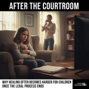 When the case ends, that outside validation can fade quickly. Adults may stop talking about safety plans or what happens next. Without those cues, some children begin to doubt their own experience, and that doubt can make recovery.